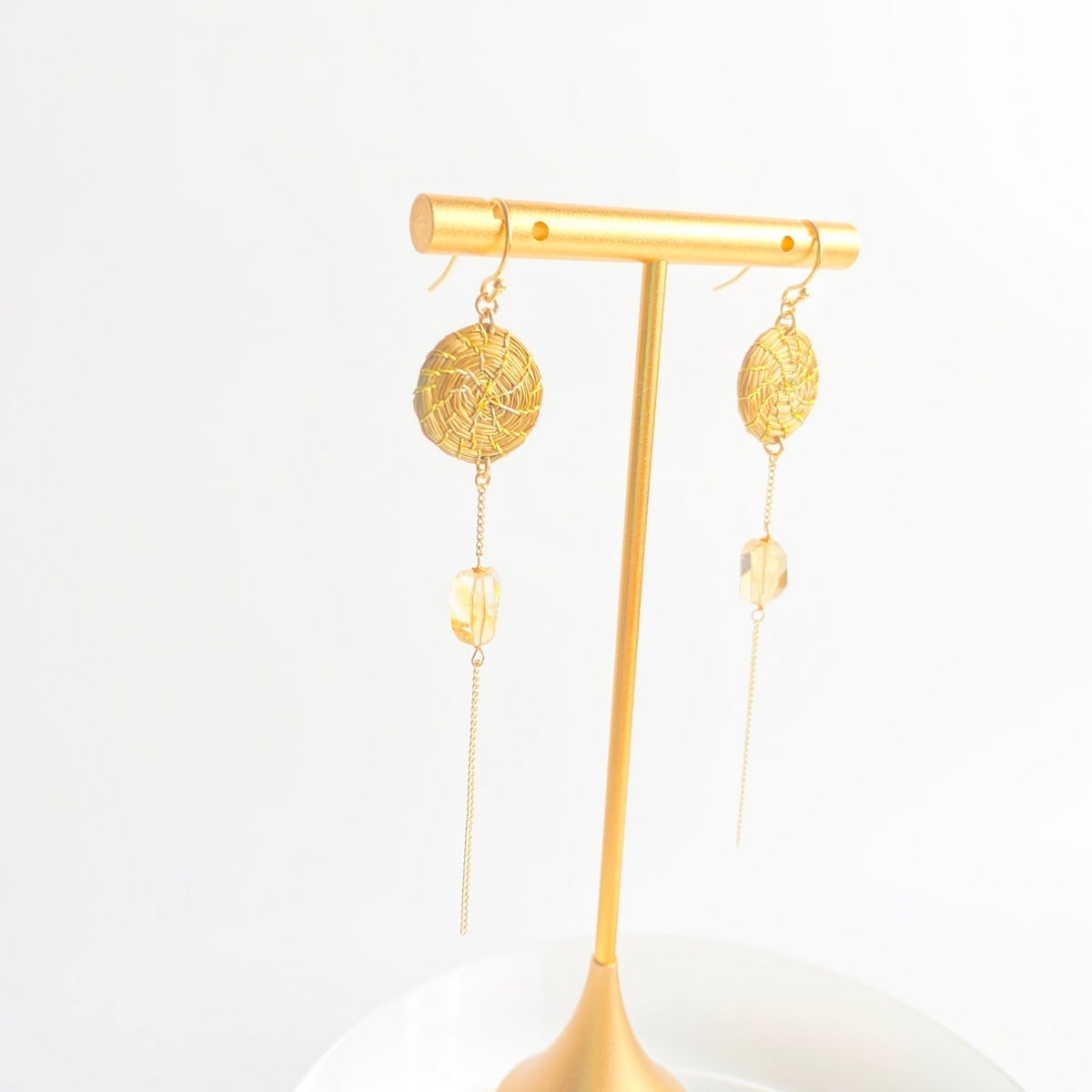 【ビオジュエリー】 黄金の草 カッピンドウラード ピアス イヤリング ラウンド シトリン