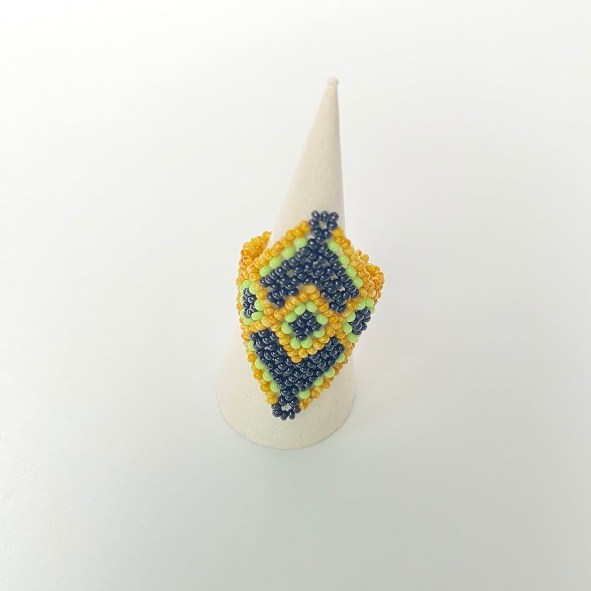 ブラジルの先住民族 Xucuru(シュクルー)族の女性たちが極小ビーズを手編みして作っているビーズリングです。