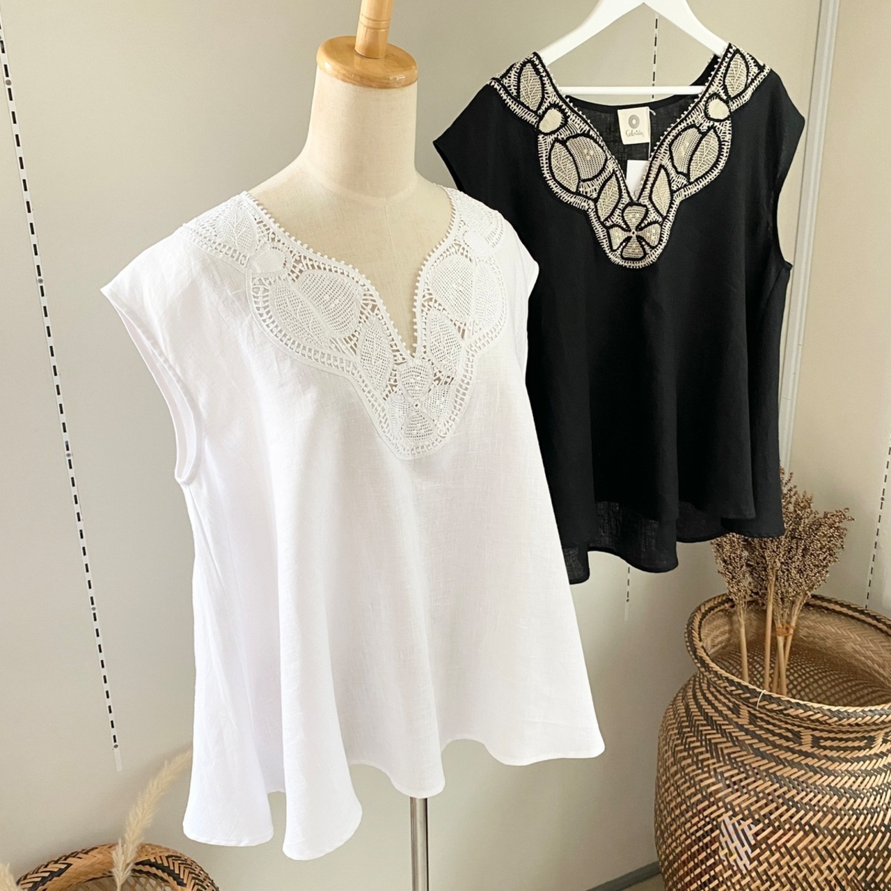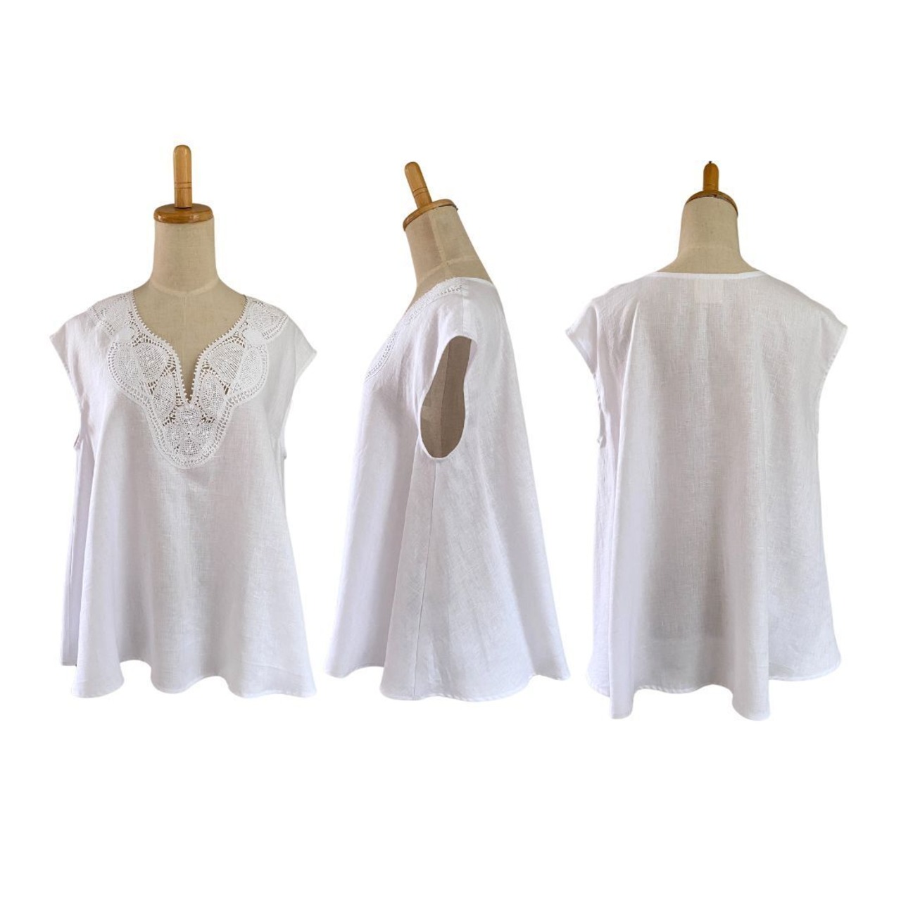 ブラジリアン 手編み ニードルレース リネン ノースリーブ ブラウス ホワイト