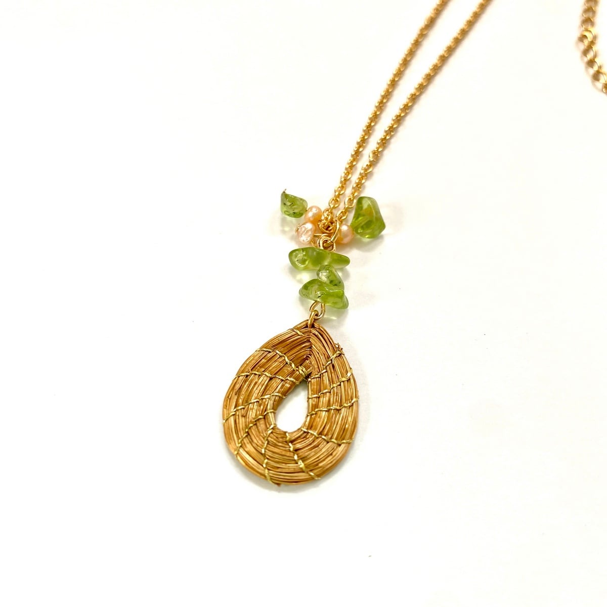 【ビオジュエリー】 黄金の草 カッピンドウラード ネックレス ティアドロップ ペリドット 淡水パール