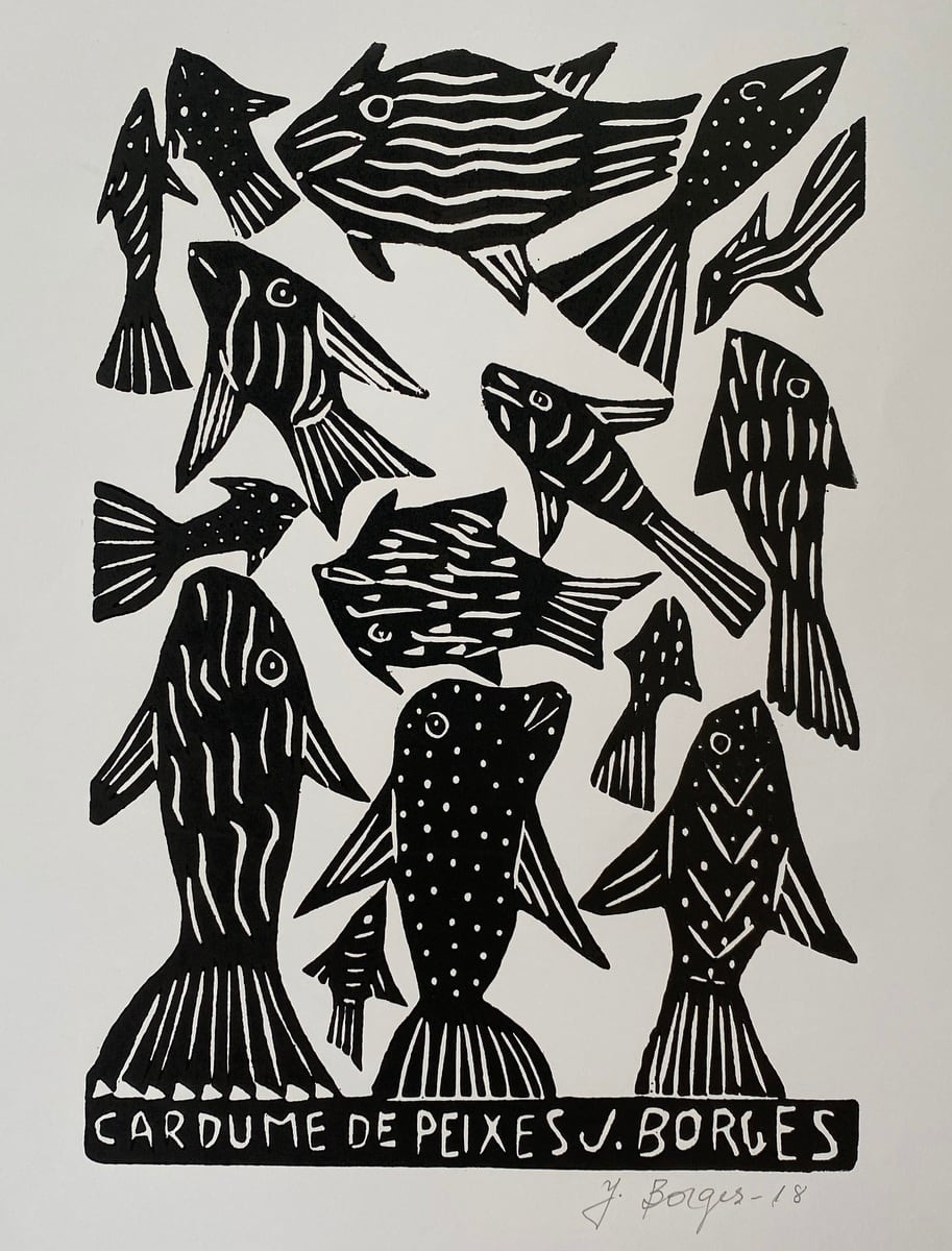 J. BORGES ジョタ・ボルジェス 木版画M【CARDUME DE PEIXES】白黒