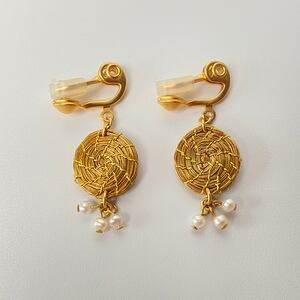 【ビオジュエリー】 黄金の草 カッピンドウラード ピアス&イヤリング ラウンドミニ 淡水パール