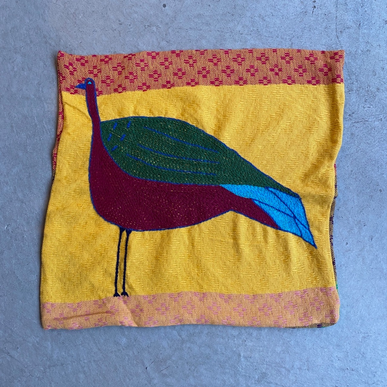 ブラジルらしいユニークなモチーフを、細やかな手刺繍で仕上げたデザインクッションカバー。